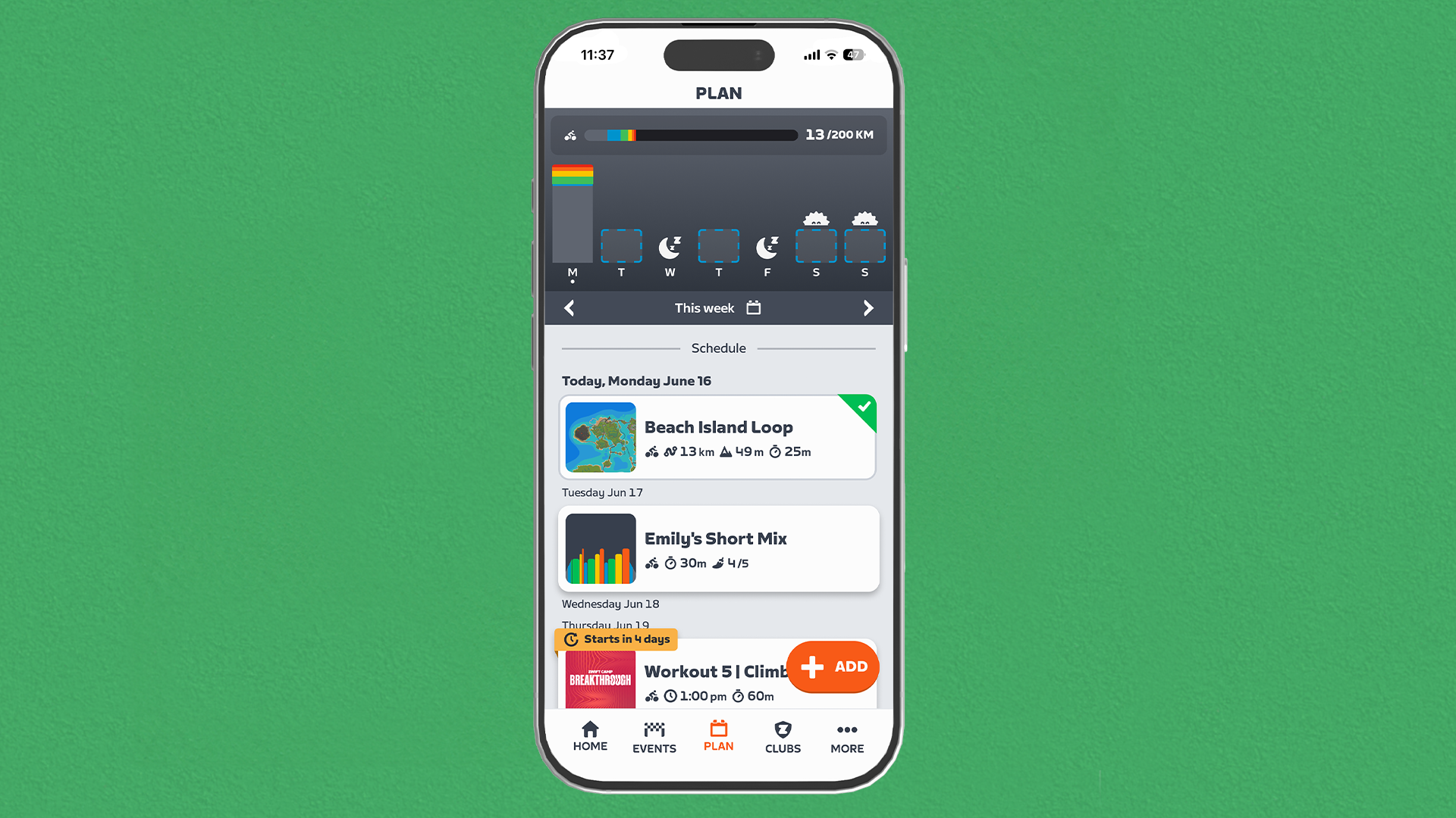 Don’t want to plan your full week? No problem. Planning a few events or activities ahead will have the added benefit of improving your personalized recommendations, so if you have a race scheduled for tomorrow, we can give you something to prime those legs.
